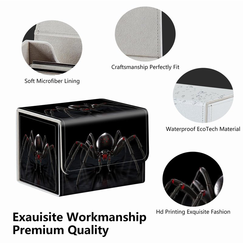 Strong Magnet Card Case Deck Box Mtg Card Box Playing Card Box Magic Deck Box Tcg Up to 200 Cards Creative Pattern Trading Card Storage Box for Collectible Card Games, Menacing Black Spider