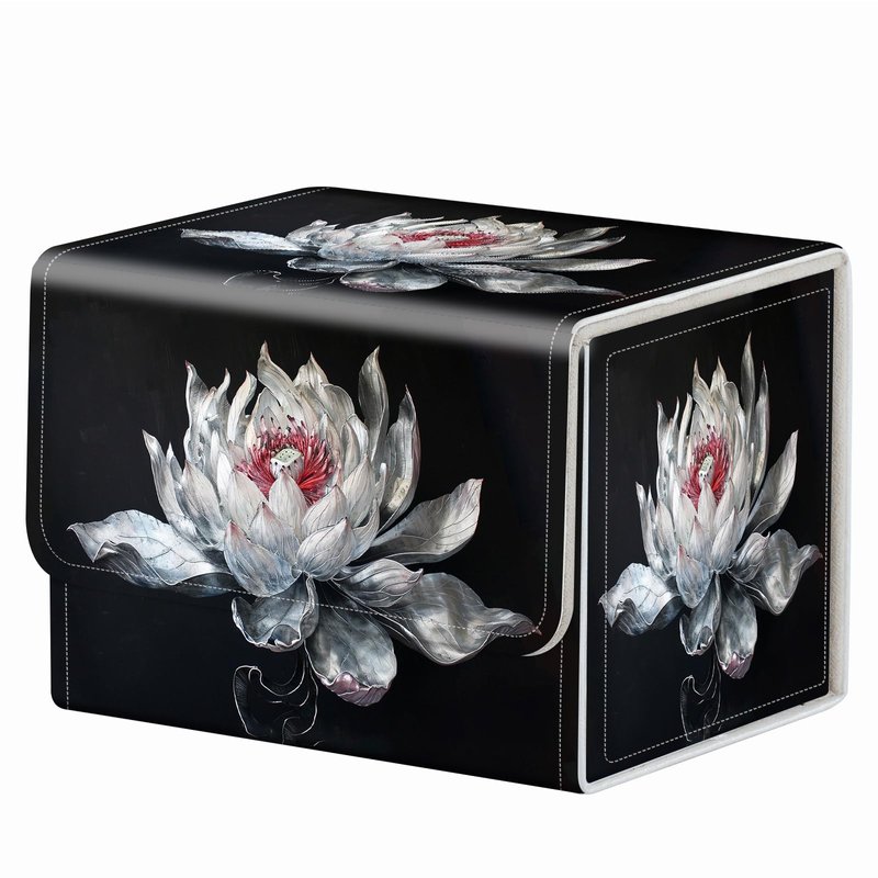 Strong Magnet Card Case Deck Box Mtg Card Box Playing Card Box Magic Deck Box Tcg Up to 200 Cards Creative Pattern Trading Card Storage Box for Collectible Card Games, White Lotus Silk Flower