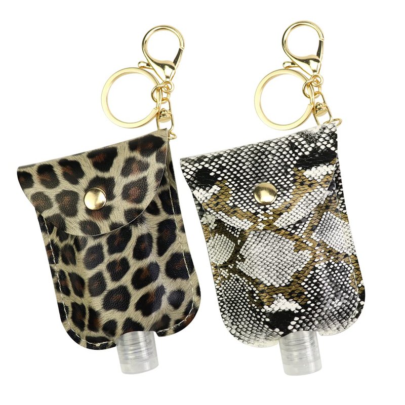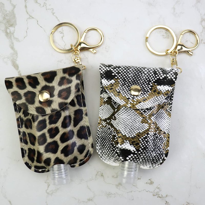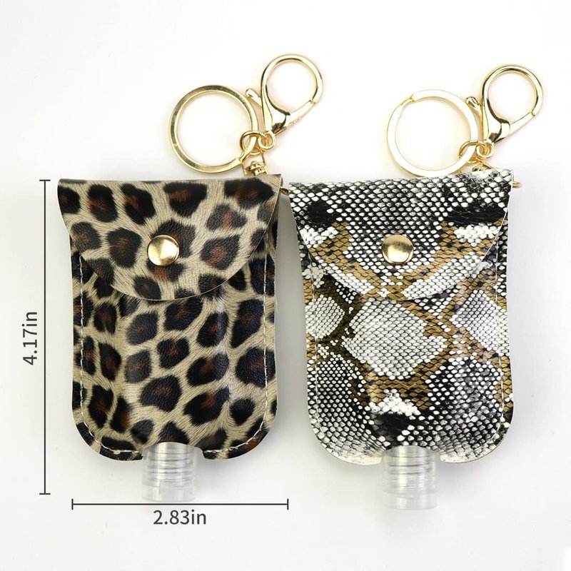 STRONGER Portable Hand Sanitizer Holder Keychain Travel Size Bottle , 2 Pack 30 ML Leopard Print Pocket Empty Leakproof Plastic Bottle Backbag Decorations For Essential Oil, Shampoo, Liquid