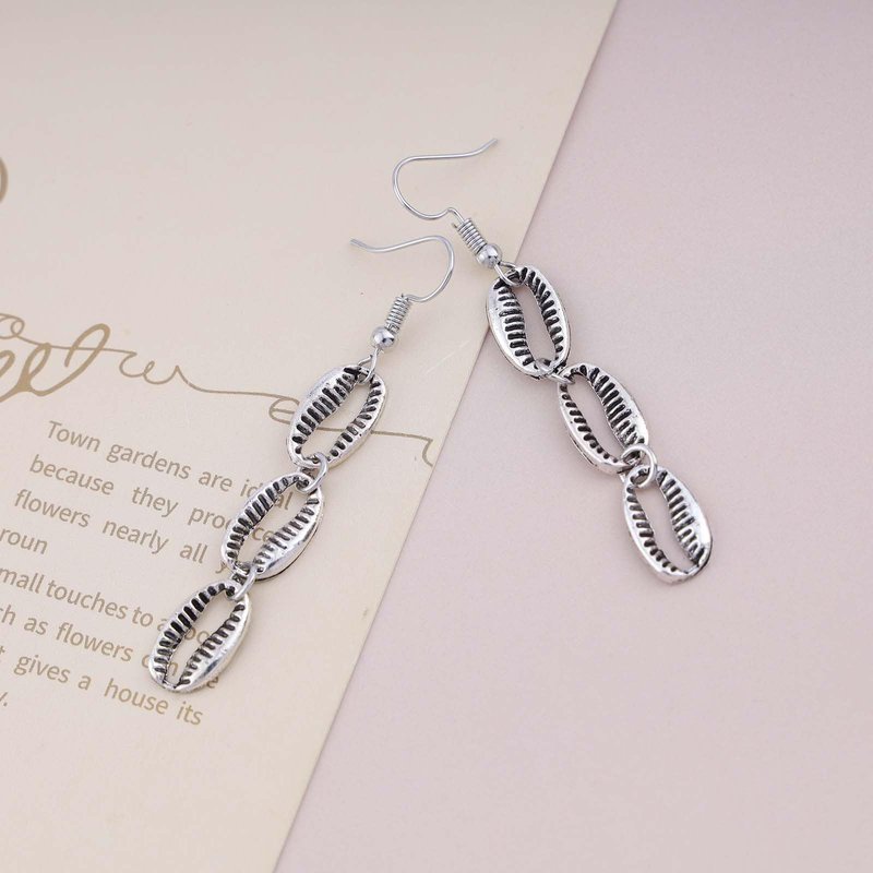 - Cowrie dangle earrings.Item Details:Handmade Item.Size:As Shown.Color:Silver.Materials:Quality Alloy.Location:Ear.Style:Boho/Vintage.
