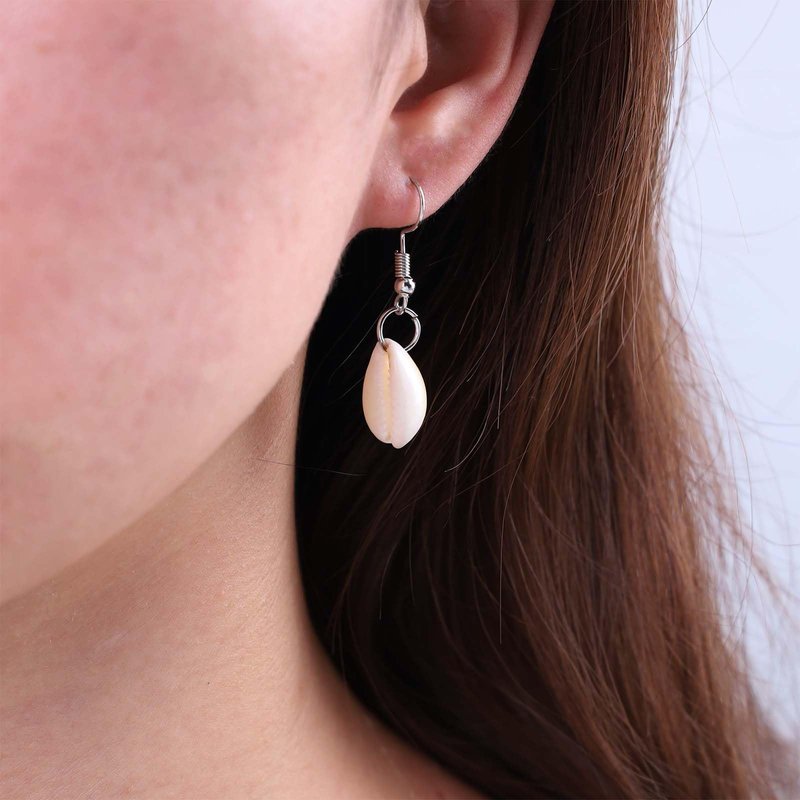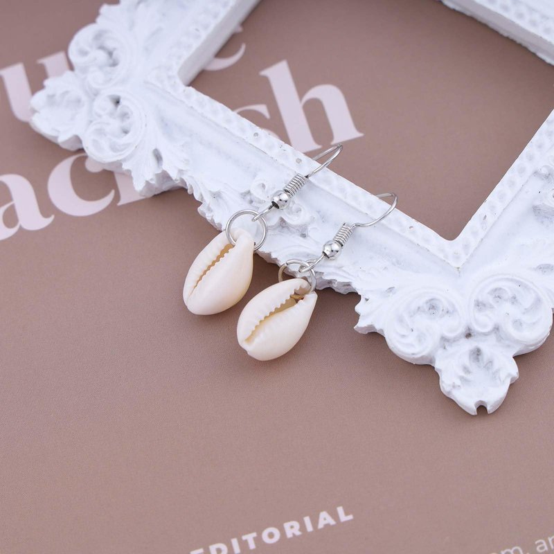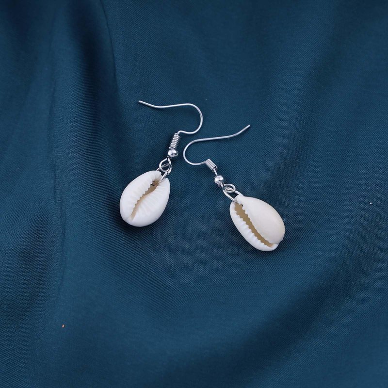 - Cowrie dangle earrings.Item Details:Handmade Item.Size:As Shown.Color:Silver.Materials:Quality Alloy.Location:Ear.Style:Boho/Vintage.