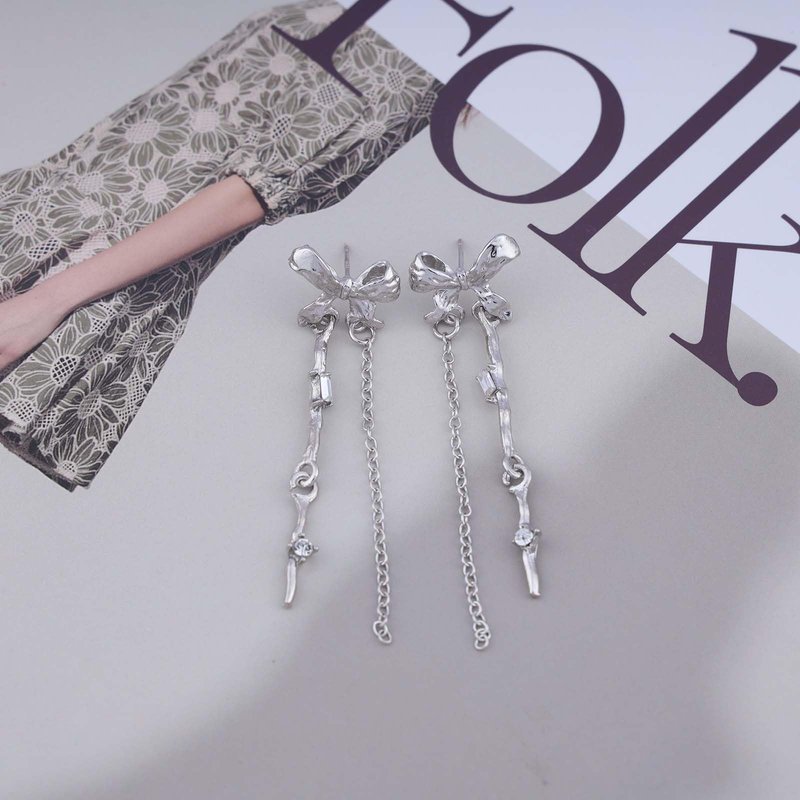 - Silver bow chain earrings.Item design:Diversify Collocation.Used to Groom Your the Ear for a More Layered Look , It is Wonderful Everyday Jewelry