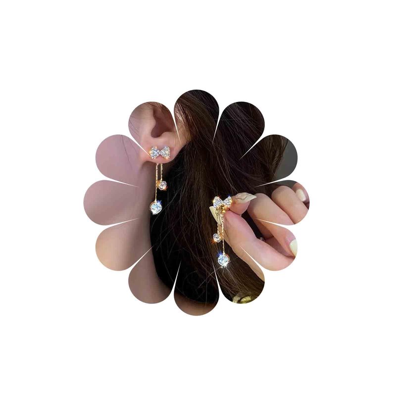 Sttiafay Vintage Crystal Bow Chain Drop Earrings Long Rhinestone Chain Earrings Cz Chain Tassel Earrings Gold Bowknot Stud Earrings Jewelry for Women