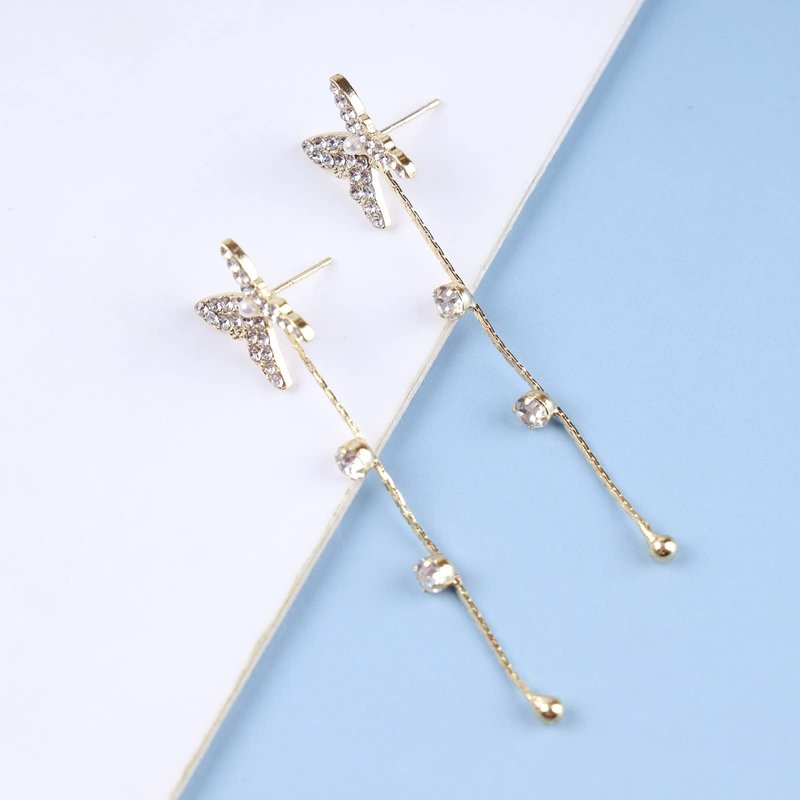 - Rhinestone butterfly dangle earrings.Item Details:Handmade Item.Size:As Shown.Color:Gold.Materials:Quality Alloy/Crystal.Location:Ear.Style:Boho/Vintage.