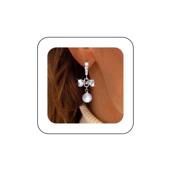 Sttiafay Vintage Crystal Pearl Dangle Earrings Rhinestone Bow Drop Earrings Cz Pearl Earrings Gold Pearl Bow Stud Earrings Jewelry for Women and Girls