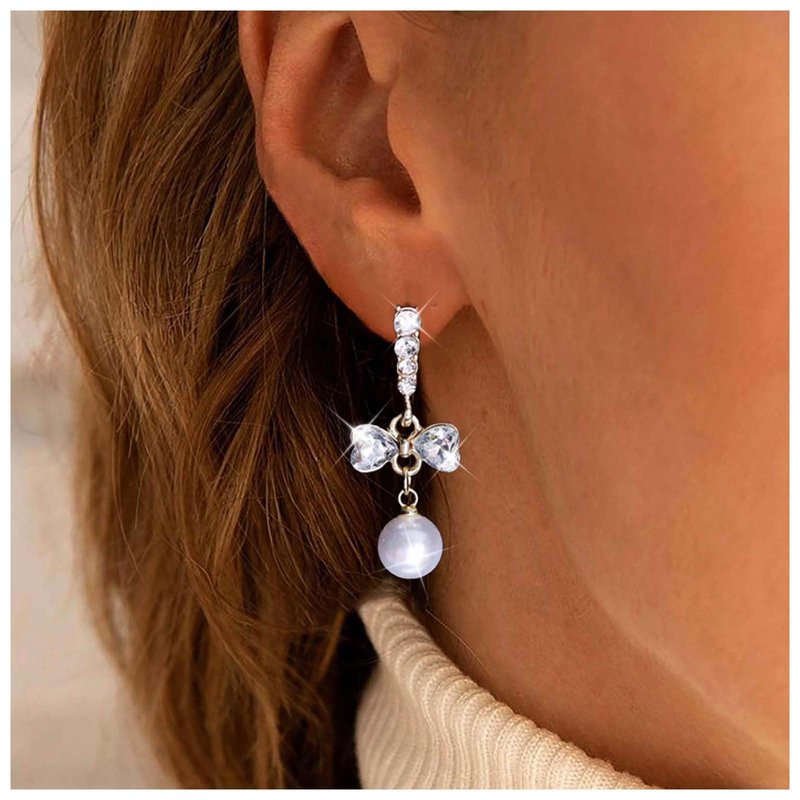 - Crystal bow drop earrings.Item Details:Handmade Item.Size:As Shown.Color:Gold.Materials:Quality Alloy/Crystal.Location:Ear.Style:Boho/Vintage.