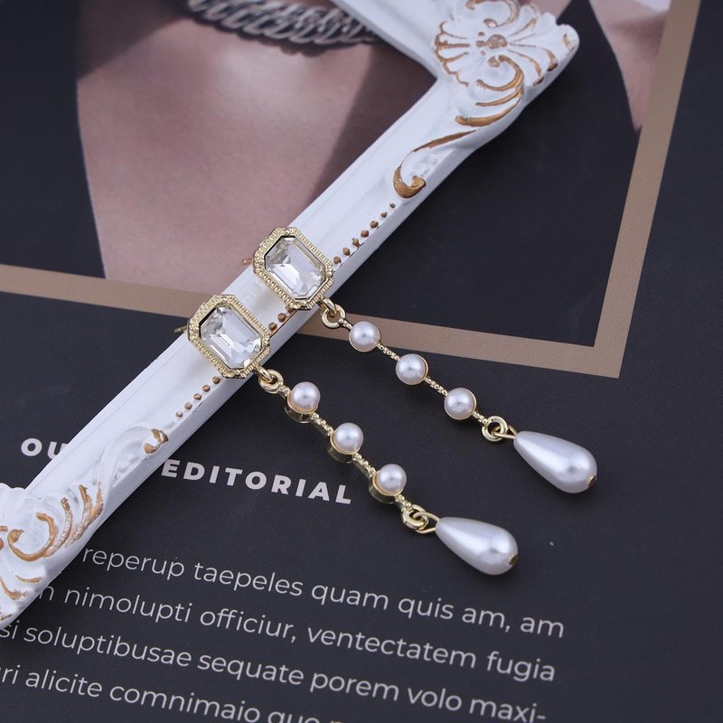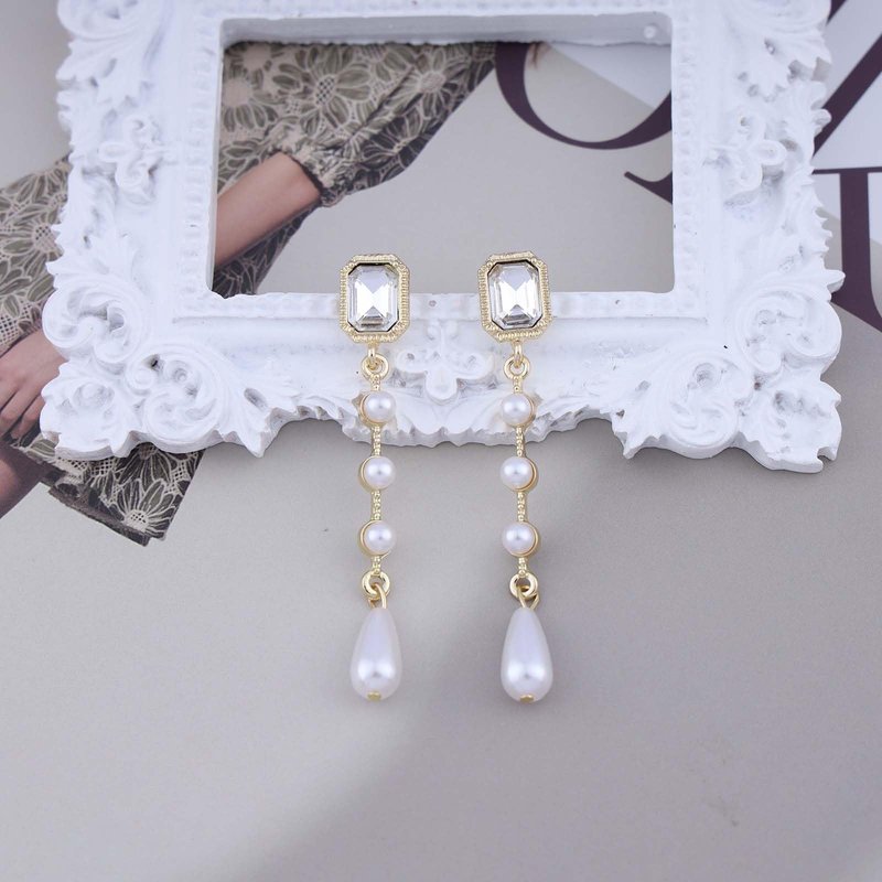 Sttiafay Vintage Crystal Pearl Dangle Earrings Teardrop Pearl Drop Earrings Long Tassel Pearl Earrings Gold Cz Square Stud Earrings Jewelry for Women and Girls