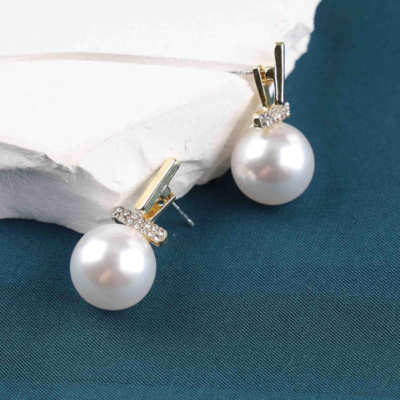 Sttiafay Vintage Crystal Pearl Drop Earrings Pearl Bar Stud Earrings Gold Rhinestone Bar Earrings Cz Bridal Pearl Earrings Jewelry for Women and Girls