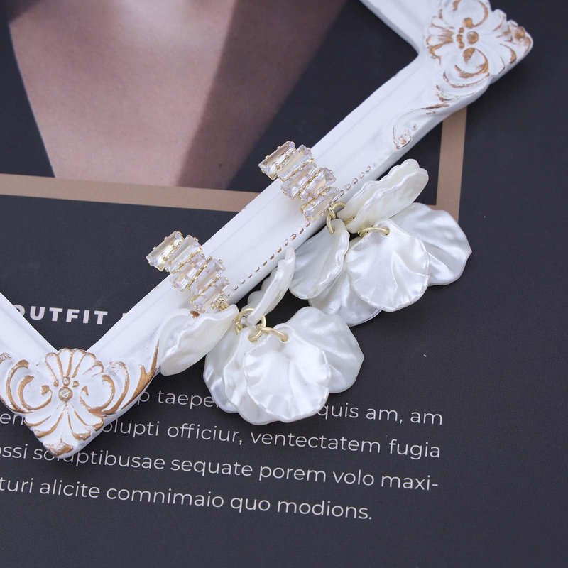 - White flower drop earrings.Item Details:Handmade Item.Size:As Shown.Color:Gold.Materials:Quality Alloy/Crystal.Location:Ear.Style:Boho/Vintage.