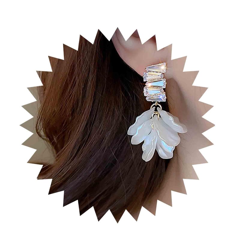 Sttiafay Vintage Crystal Resin Flower Dangle Earrings White Acrylic Flower Earrings Gold Cz Crystal Stud Earrings Weddings Flower Earrings Jewelry for Women and Girls