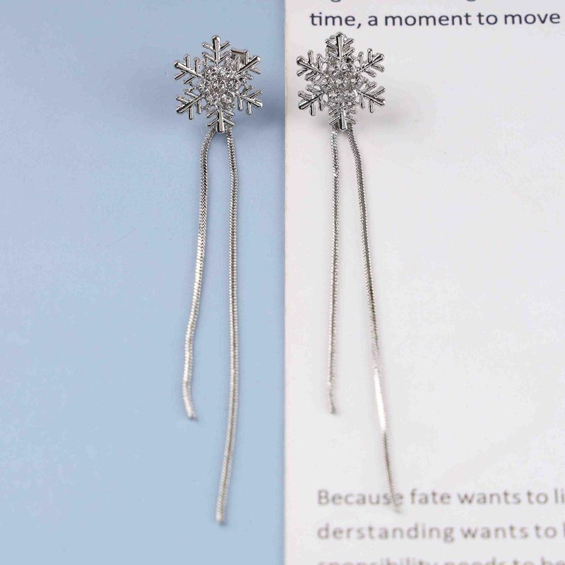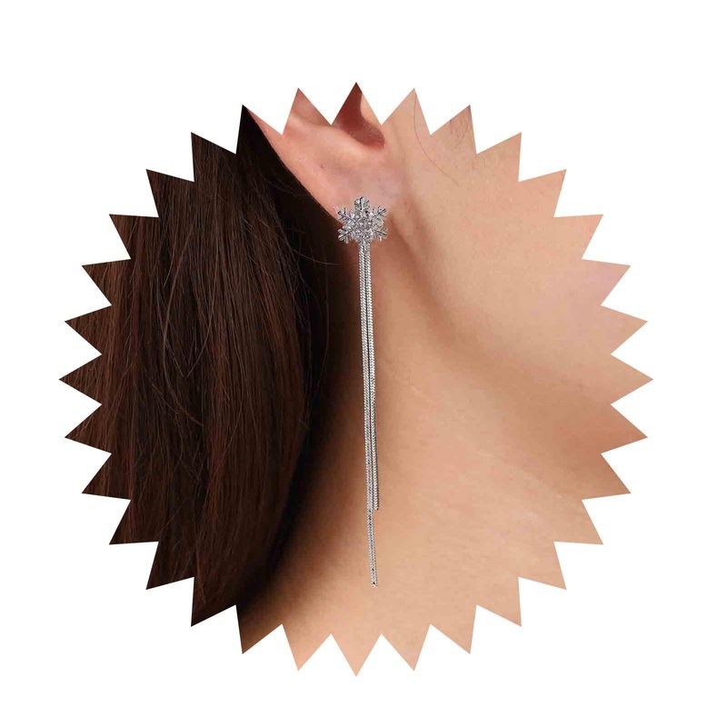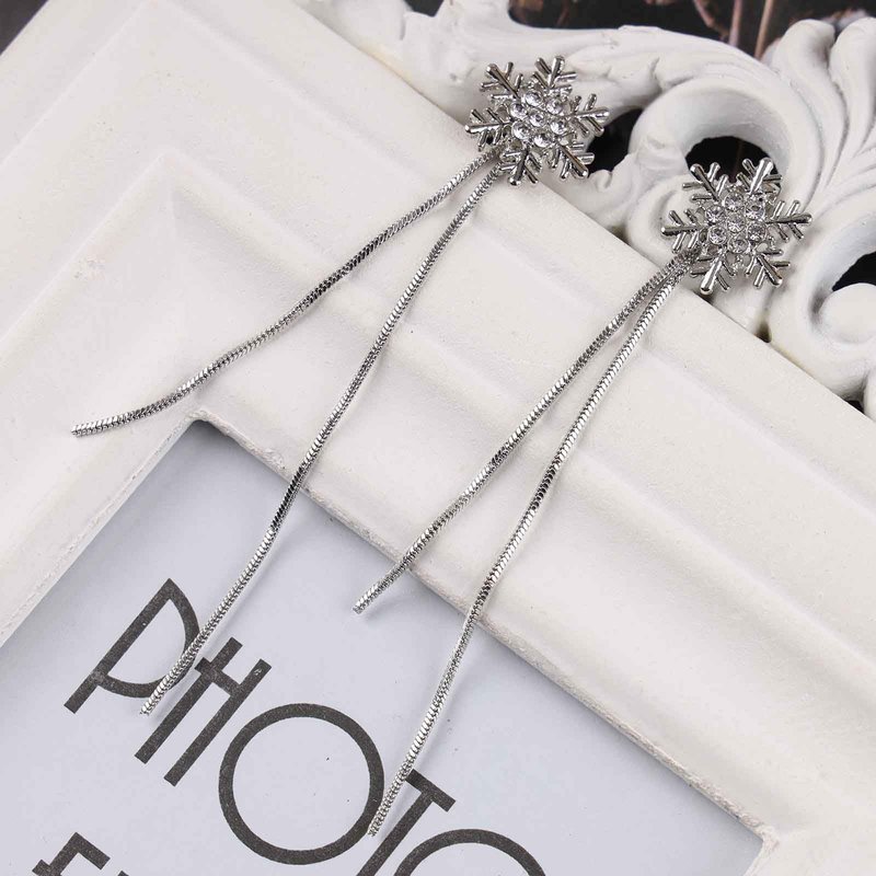 - Silver snowflake drop earrings.Item Details:Handmade Item.Size:As Shown.Color:Silver.Materials:Quality Alloy/Crystal.Location:Ear.Style:Boho/Vintage.
