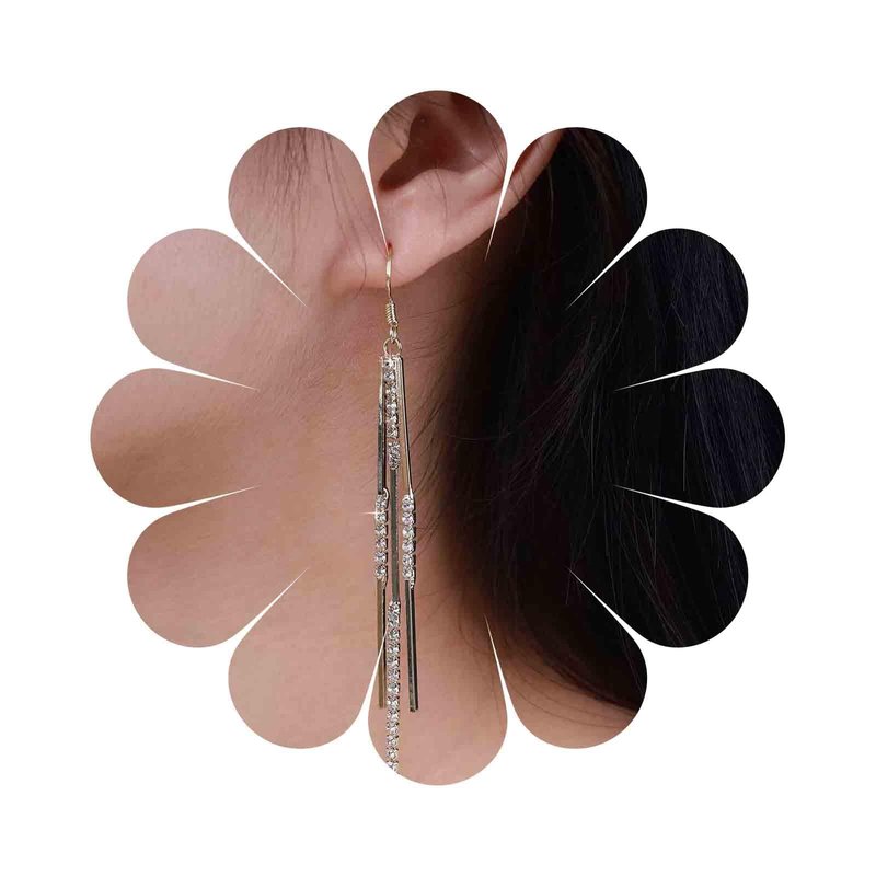 - Rhinestone long chain earrings.Item design:Diversify Collocation.Used to Groom Your the Ear for a More Layered Look , It is Wonderful Everyday Jewelry,This Earrings Pins is Very Trendy Designed in a Minimalist Style.