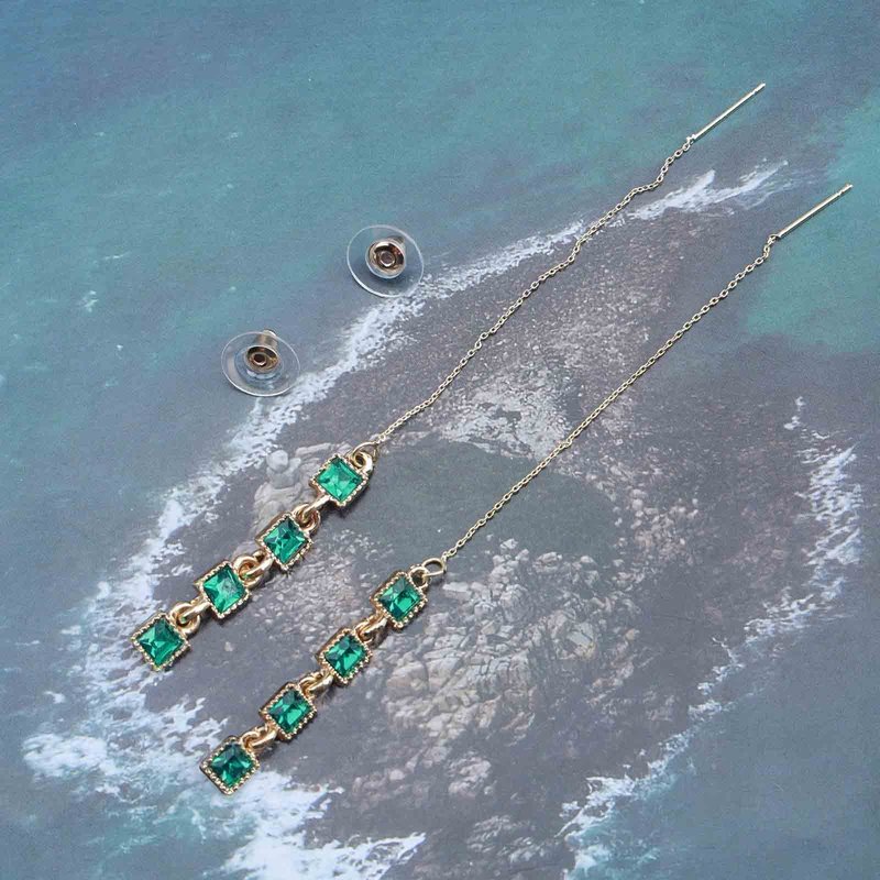 - Green emerald chain earrings.Gift Occasion:The Simple Elegance and Intricate Detailing,From Casual to High Chic.Suitable for any Occasion, Such as Beaches, Event Parties, Dance Parties, Dates, .Daily Collocations,Banquet,Weddings, etc.