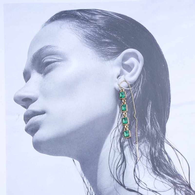 Sttiafay Vintage Emerald Crystal Threader Earrings Green Gem Drop Earrings Emerald Cz Square Earrings Gold Long Emerald Chain Earrings Jewelry for Women and Girls