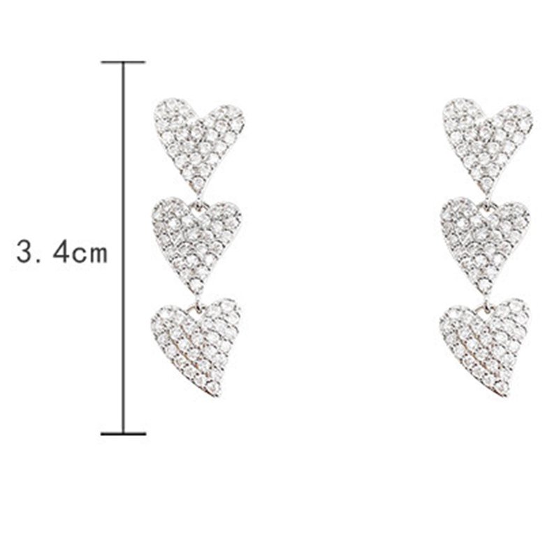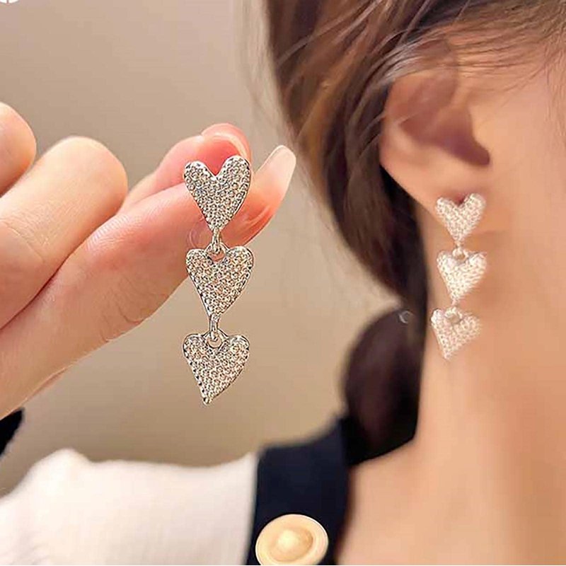 Sttiafay Vintage Heart Drop Earrings Long Heart Dangle Earrings Triple Heart Stud Earrings Silver Love Heart Earrings Jewelry for Women and Girls