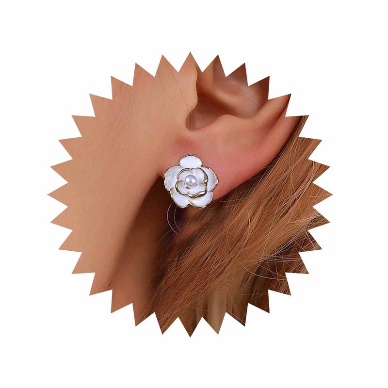 - Pearl camellia earrings.Item Details:Handmade Item.Size:As Shown.Color:Gold.Materials:Quality Alloy/Pearl.Location:Ear.Style:Boho/Vintage.