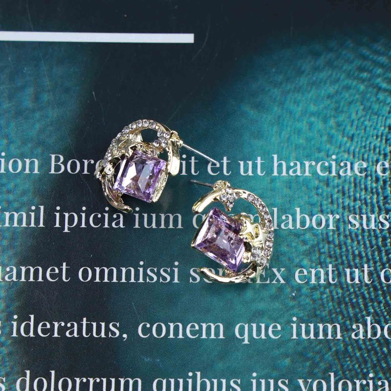 - Purple gem stud earrings.Item Details:Handmade Item.Size:As Shown.Color:Gold.Materials:Quality Alloy/Crystal.Location:Ear.Style:Boho/Vintage.