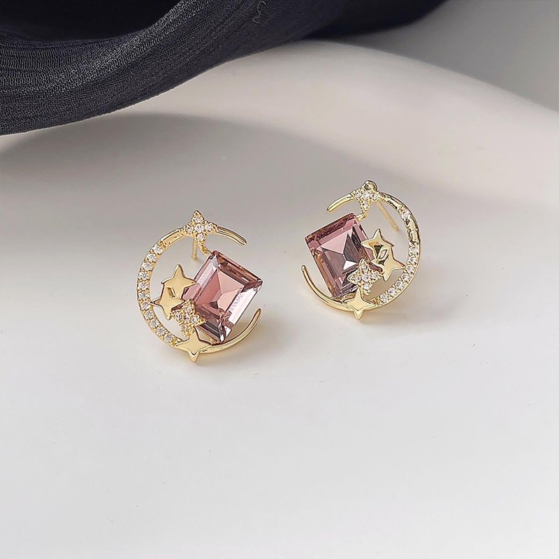 Sttiafay Vintage Purple Crystal Moon Earrings Amethyst Square Stud Earrings Rhinestone Crescent Earrings Gold Cz Star Stud Earrings Jewelry for Women and Girls