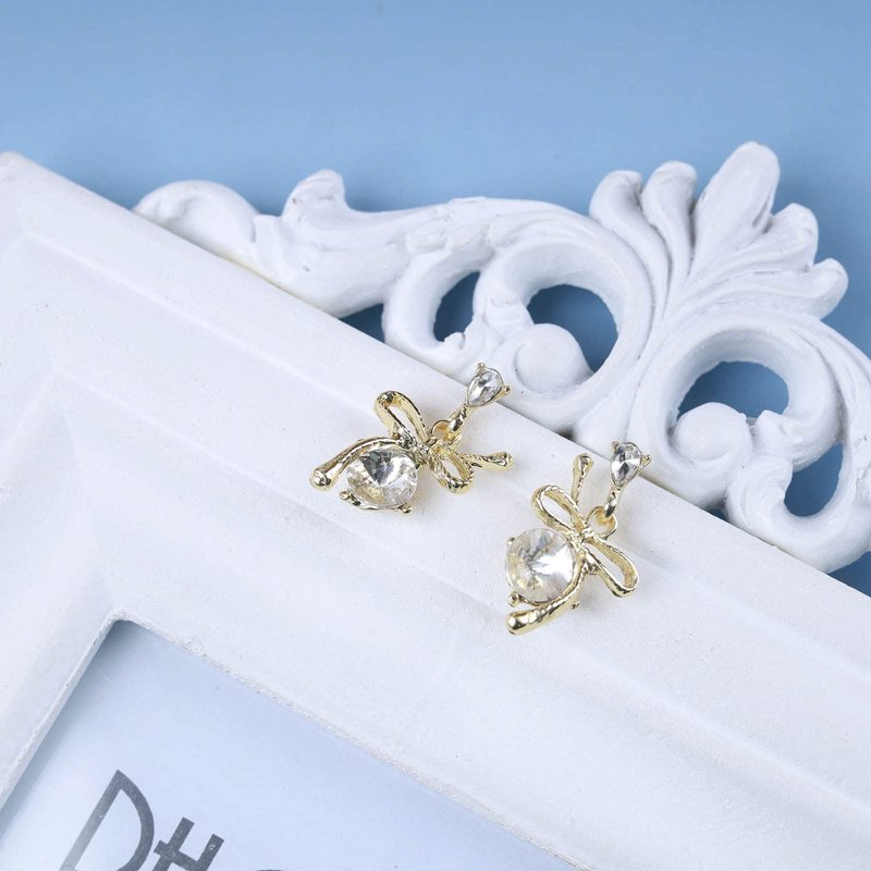 - Crystal bow earrings.Item Details:Handmade Item.Size:As Shown.Color:Gold.Materials:Quality Alloy/Crystal.Location:Ear.Style:Boho/Vintage.