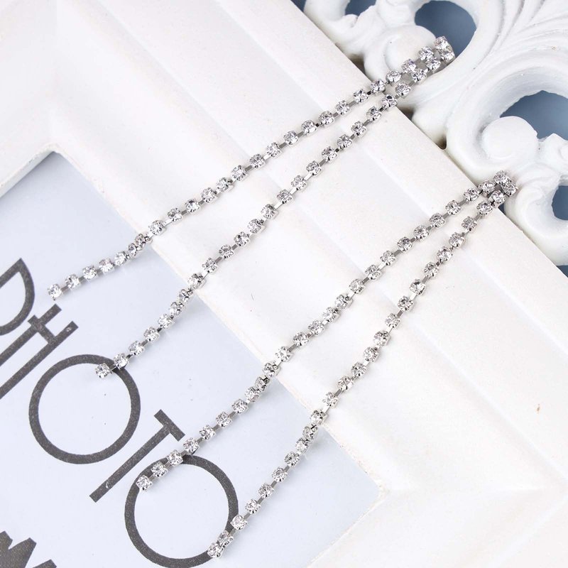 - Silver rhinestone chain earring.Item Details:Handmade Item.Size:As Shown.Color:Silver.Materials:Quality Alloy/Crystal.Location:Ear.Style:Boho/Vintage.
