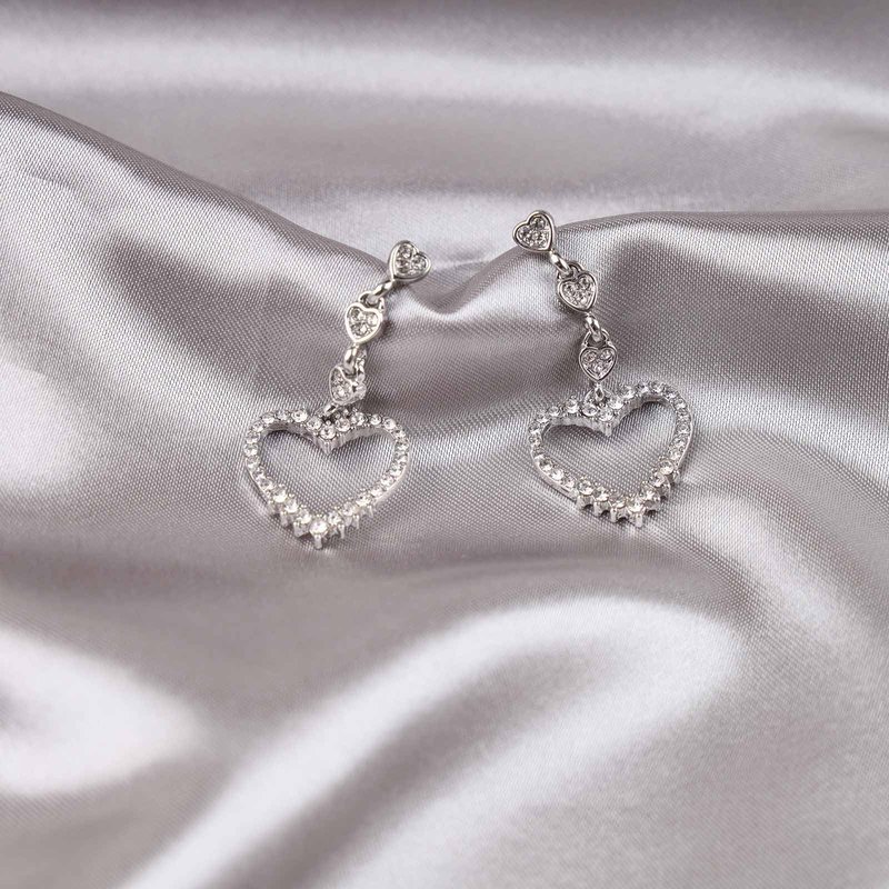 - Crystal heart dangle earrings.Item Details:Handmade Item.Size:As Shown.Color:Silver.Materials:Quality Alloy/Crystal.Location:Ear.Style:Boho/Vintage.