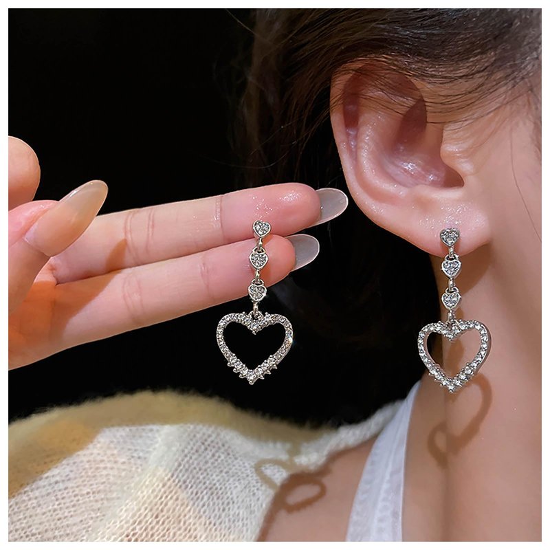 Sttiafay Vintage Rhinestone Heart Dangle Earrings Long Crystal Heart Earrings Silver Hollow Heart Drop Earrings Cz Love Heart Stud Earrings Jewelry for Women and Girls