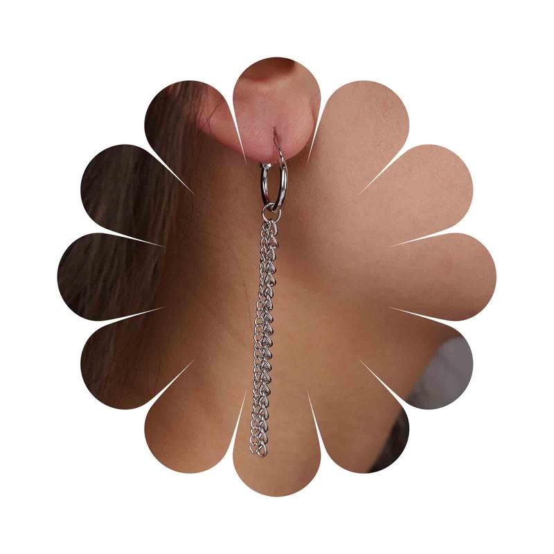 - Silver thick chain drop earrings.Item Details:Handmade Item.Size:As Shown.Color:Silver.Materials:Quality Alloy.Location:Ear.Style:Boho/Vintage.