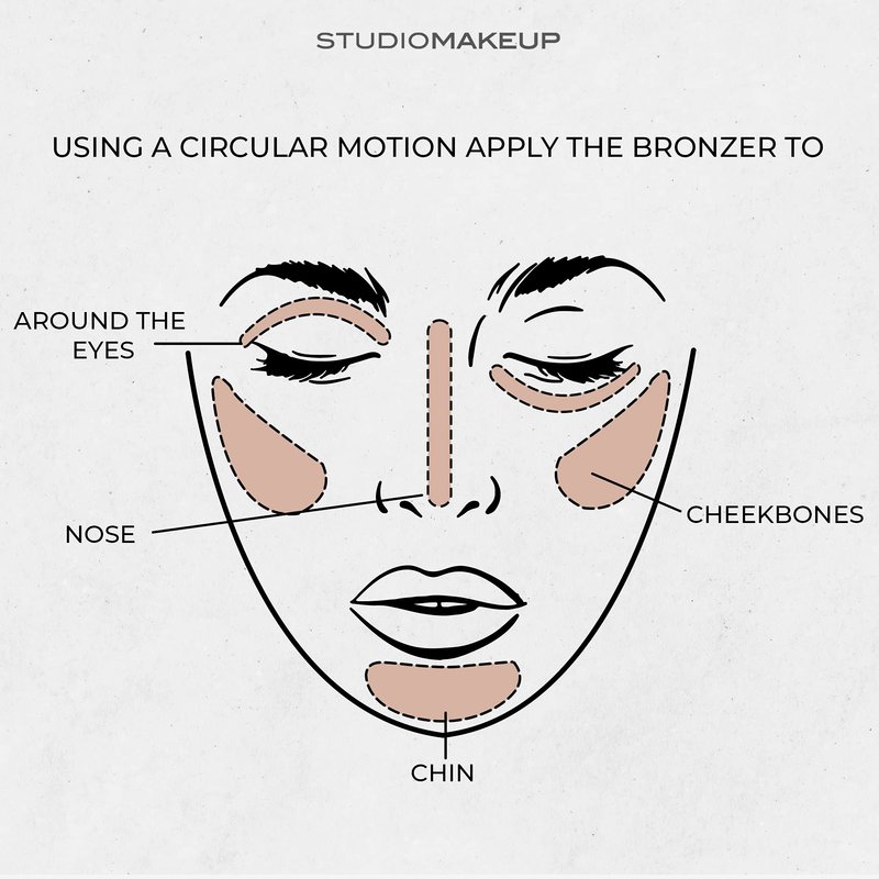 - Smooth and Easy Application; Always prep your skin before using our instant bronzer; Apply this light bronzer to your cheekbones chin nose and around the eyes in a circular motion; Better to use a professional makeup bronzer brush.