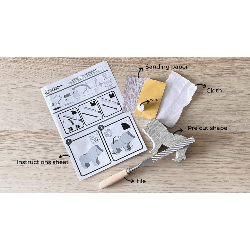 - 🦏Our craft kit contains all the tools you need to create your masterpiece: a hand-cut Brazilian soapstone shape, a kid-safe carving file, two grades of sandpaper, polishing wax for a shiny finish, a buffing cloth, and step-by-step instructions. The finished life-like sculpture is approximately 1.5” x 3” x 1” (L x H x W).