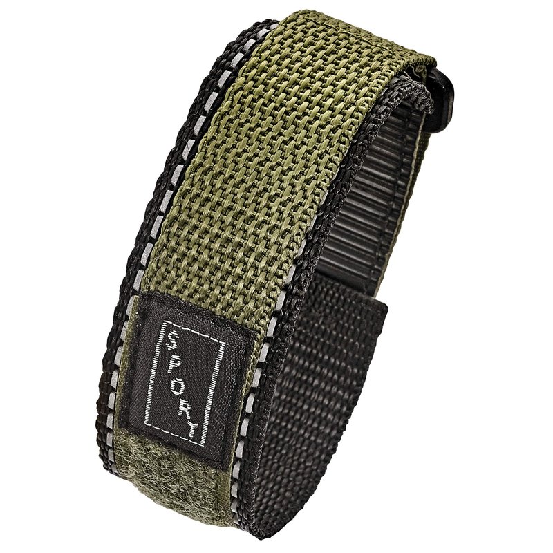 STUNNING SELECTION ALPINE Sporty Padded Nylon Fabric watch band - 20mm - black/green