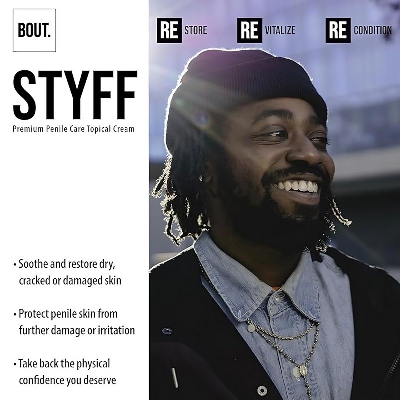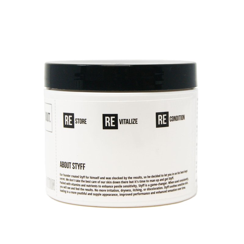 - Recondition, Revitalize, Restore Penile Skin: STYFF soothes cracked, dry, irritated skin leading to a more youthful and supple appearance, over time.