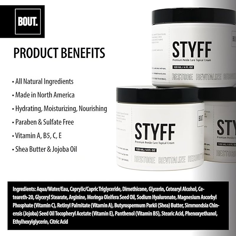 - Take back you confidence: STYFF’s penile health cream allows you to take back the physical confidence you deserve by directly improving your penile health.