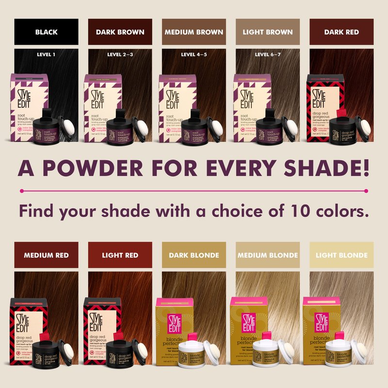 - ROOT COVER UP Style Edit’s ultra-light root cover up binding powder instantly conceals unwanted grays or root re-growth with just one swipe, for salon worthy hair, every day! Our unique sponge applicator allows for precise application of our root touch up powder – conceal what you want, where you want it.