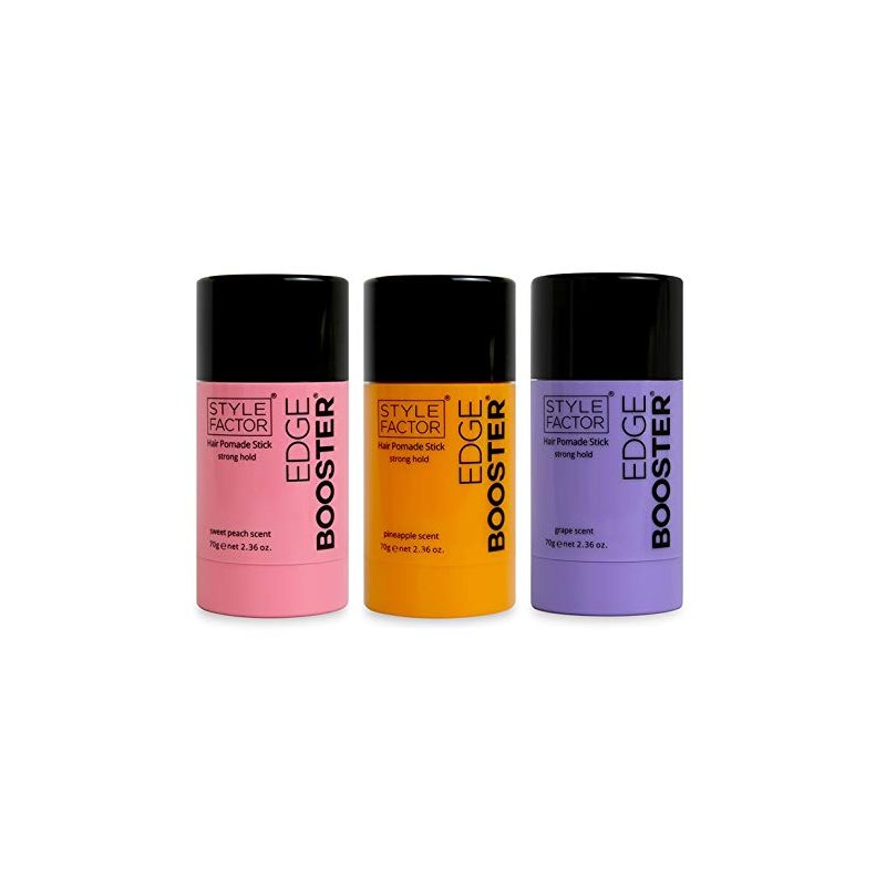 Style Factor Edge Booster Hair Pomade Stick Strong Hold Grape Pineapple Sweet Peach 2.36 oz (Get all 3)