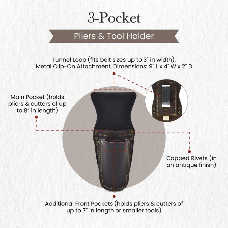 - Ideal Belt Pouch: Style n Craft presents an innovative 3-pocket pliers and tool holder that will make your work easier and more efficient. Our tool pouch is durable, extremely versatile, and ideal for everyday use.