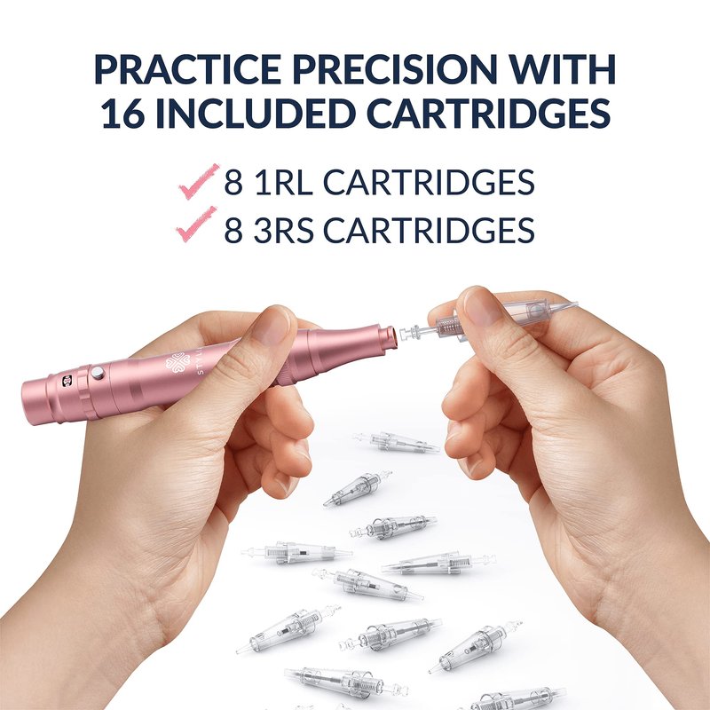- CARTRIDGE ASSORTMENT – Polish your precision with your microblading kit that comes with 8 1RL and 8 3RS cartridges. Rest assured your cartridges are sterile courtesy of EO gas sterilization.