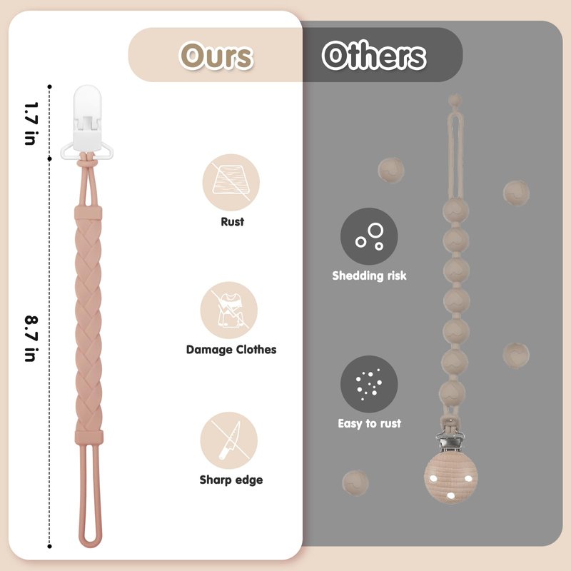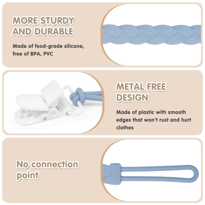 - Versatile: Universal pacifier clip holder attaches securely to baby's clothing, preventing pacifiers from falling on the ground.