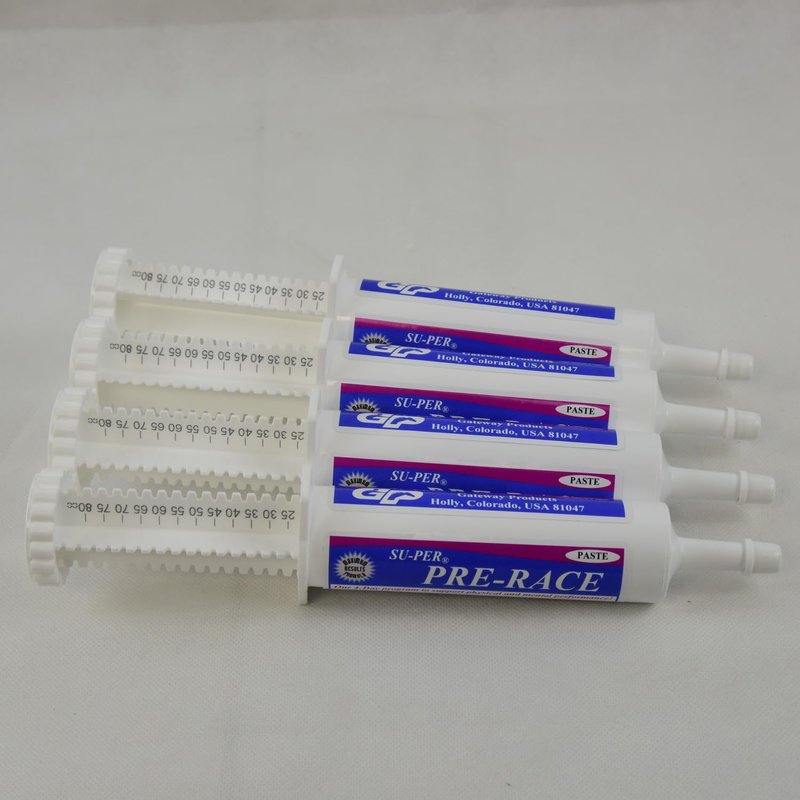 - 4 PACK: Pre-Race paste is unique in the way it is fed. It features a 4-pack of syringes, and is given for 4 days leading up to the competition. This allows the body time to fully prepare for the upcoming competition without wild swings in energy level or mental focus.