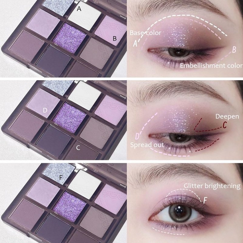 Waterproof 9 Colors Shimmer Matte Eyeshadow Palette.Longwearing Highly Pigmented Glitter Powder Palet.Matt Pink Shiny Purple Eye shadow Palet Eye Makeup.paleta de sombras moradas