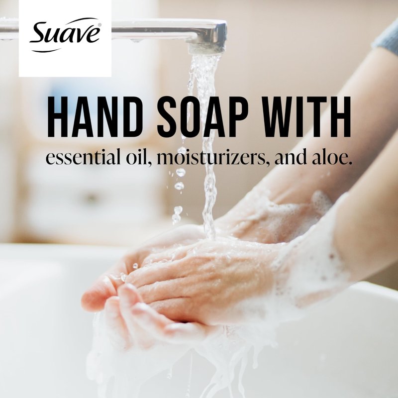 - MOISTURIZING HAND SOAP: Each Suave hand soap – infused with essential oils, moisturizers, and vitamin E – washes away dirt and germs without leaving hands feeling dry.