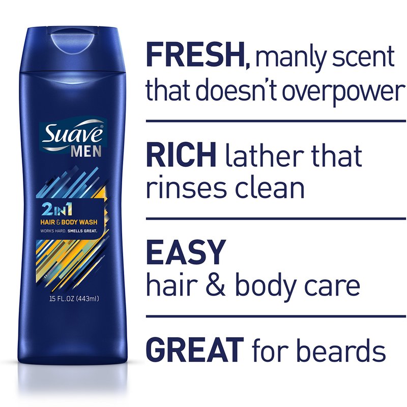 Suave Men 2 in 1, Hair and Body Wash, 15 Fl Oz