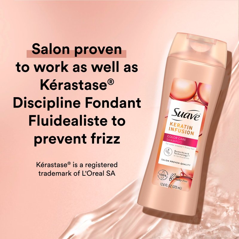- COLOR-SAFE SHAMPOO & CONDITIONER: Suave Keratin Infusion Shampoo and Conditioner for color-treated & frizzy hair nourishes your strands making them feel strong, soft, and shiny again.