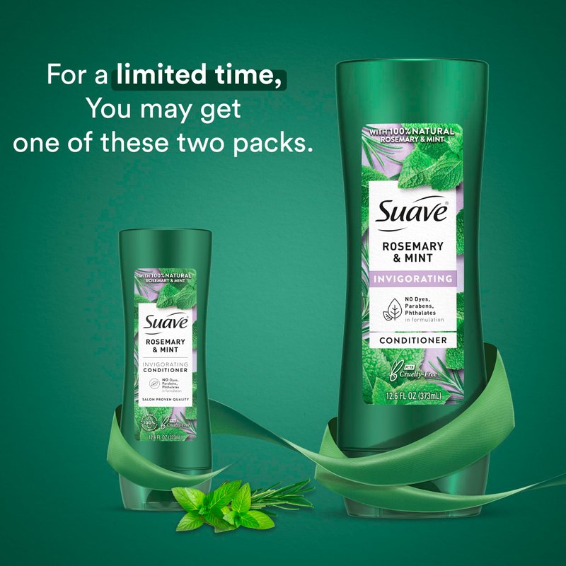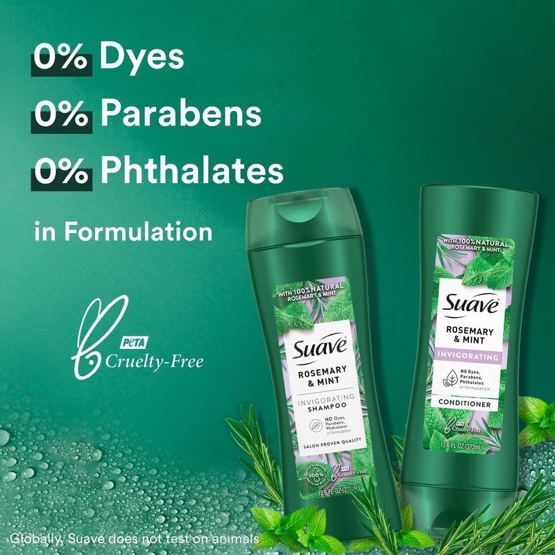 - ROSEMARY MINT SHAMPOO & CONDITIONER: Suave Shampoo and Conditioner are infused with 100% natural rosemary and mint for a fresh, invigorating clean.