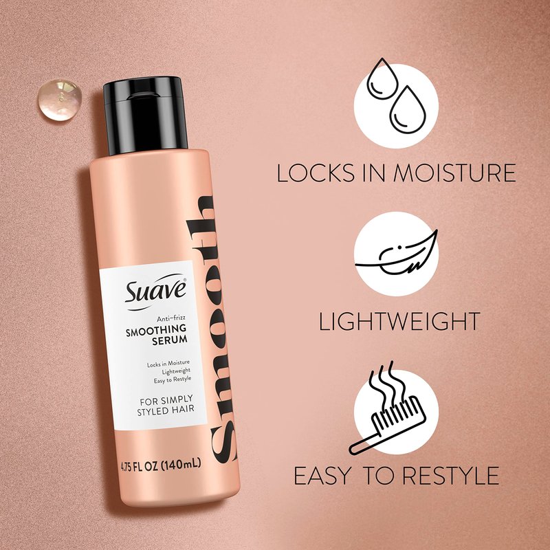 - ANTI-FRIZZ HAIR PRODUCTS: Our multi-tasking Suave Simply Styled Smoothing Serum also protects your hair from humidity and fights flyaways and frizz for up to 24 hours.