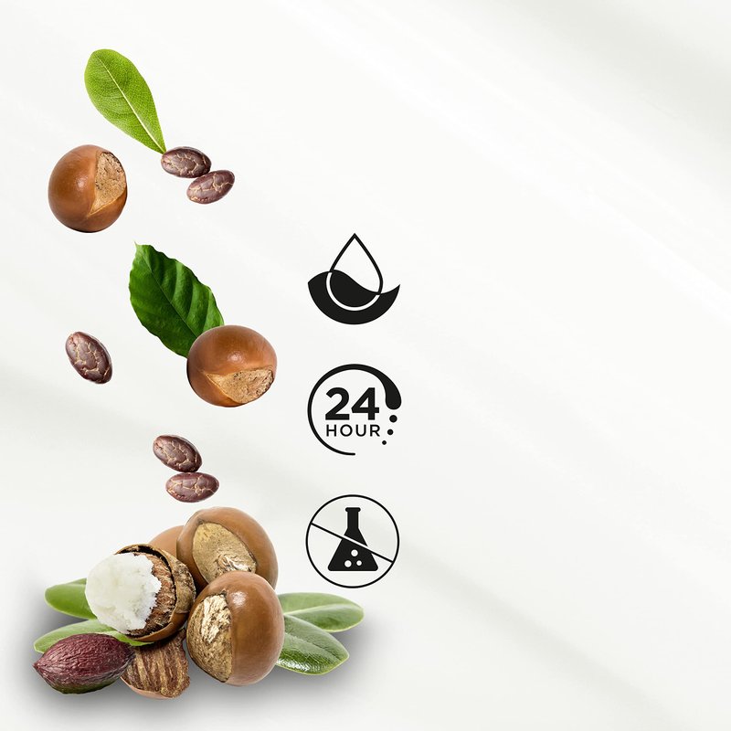 - Suave Smoothing with Cocoa Butter & Shea Body Lotion is a lotion with cocoa butter and Shea that provides 24 hour moisturization