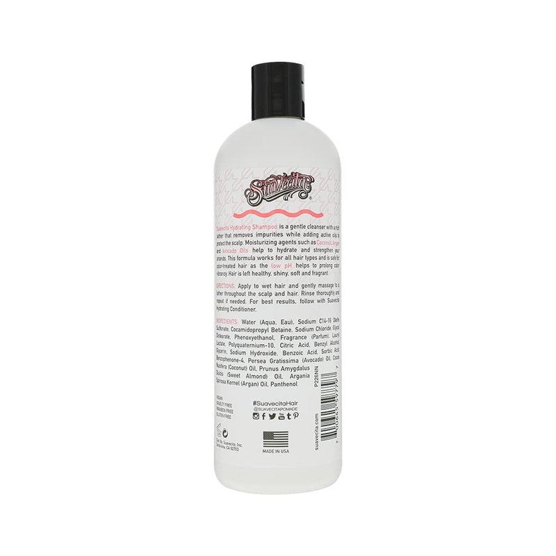 Suavecita Hydrating Shampoo is a gentle cleanser that works into a rich lather to remove impurities while adding active oils to protect the scalp. Moisturizing agents such as Coconut Oil, Argan Oil, and Avocado Oil help to hydrate and strengthen your strands. This formula works for all hair types and is safe for color-treated hair as the low PH helps to prolong color vibrancy. Hair is left healthy, shiny, soft and fragrant.