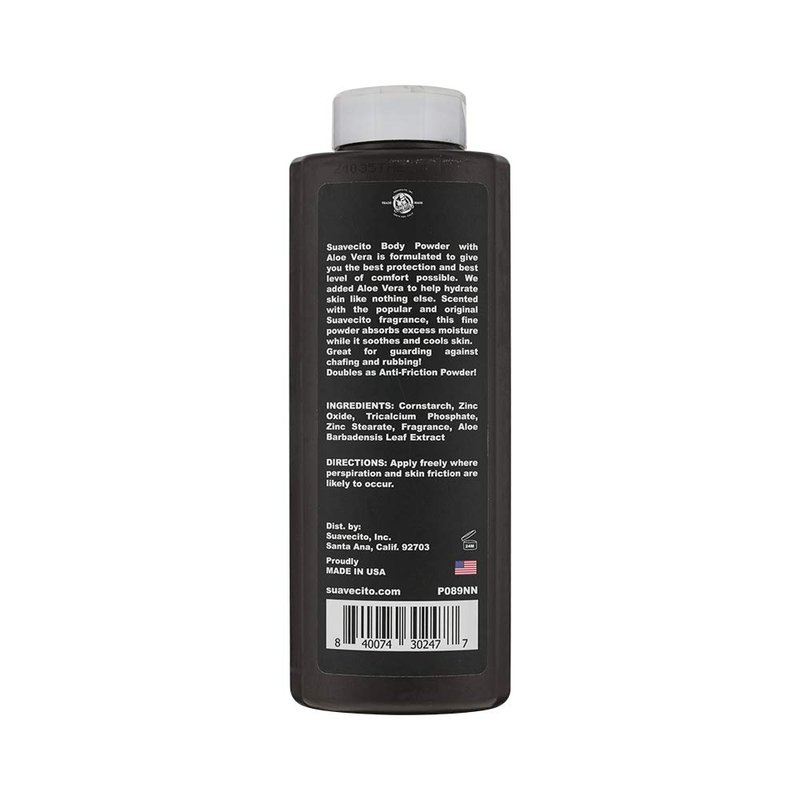 Guard against the dangers of excess moisture and accept that you can be living in comfort all day long. What is stopping you? Suavecito’s Body Powder with Aloe Vera is formulated to give you the best protection and best level of comfort possible. We added Aloe Vera to help hydrate skin like nothing else. Scented with the popular and original Suavecito fragrance, this fine powder absorbs excess moisture while it soothes and cools skin. This formula is great for guarding against chafing and rubbing! It also doubles as an Anti-Friction powder. Trust Suavecito Pomade to provide you with a high quality product that will work hard to improve your day and help you to continue to kick butt at life.