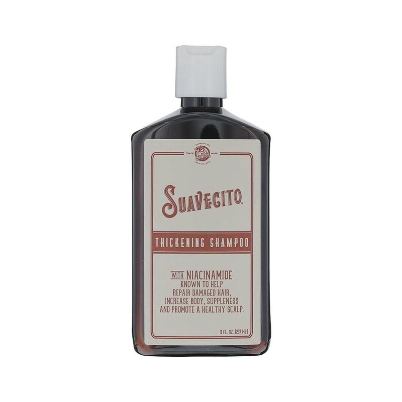 What is Niacinamide? Niacinamide, also known as nicotinamide, is a form of Vitamin B3 that is beneficial to hair health and can potentially speed up the rate of hair regrowth seen in combination with minoxidil and a DHT blocker. Niacinamide is also thought to restore damaged hair and increase body and suppleness of hair for the appearance of thicker locks. What other beneficial ingredients are in here? Both our Thickening Shampoo and Conditioner contain niacinamide as well as other ingredients that are popular in hair loss shampoos for their hair growth benefits. Rosemary Oil- Found in both our Thickening Shampoo and Conditioner, rosemary oil has been commonly used to promote hair growth similar to minoxidil. Panthenol- Found in our Thickening Shampoo is believed to have benefits for hair thickness and moisture retention. Aloe Barbadensis Leaf Juice- Found in our Thickening Shampoo, aloe may help promote a healthy scalp and help condition and repair damaged hair. Biotin- Found in our Thickening Conditioner, is a form of Vitamin B. While there is little known about the effects of biotin on hair growth, a biotin deficiency is known to lead to hair loss, indicating it is important to your hair health. Caffeine- Found in our Thickening Conditioner, caffeine has been shown to extend the growth phase of hair follicles and works well in combination with minoxidil and/or DHT blockers. How soon will I see results? Using this Thickening Shampoo & Conditioner in conjunction with minoxidil and a DHT blocker is the best way to see results, especially around the hairline, which isn’t typically helped by minoxidil or DHT blockers. Results typically take 4-6 months to see. We recommend consulting your physician before starting use of any new medicated product. Have Questions? Please call 714-388-6920 or email info@suavecito.com If you are having an allergic reaction to a product, please contact your doctor.
