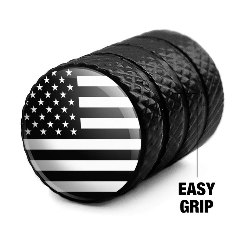 Subdued American USA Flag Black White Military Tactical Tire Rim Wheel Aluminum Valve Stem Caps
