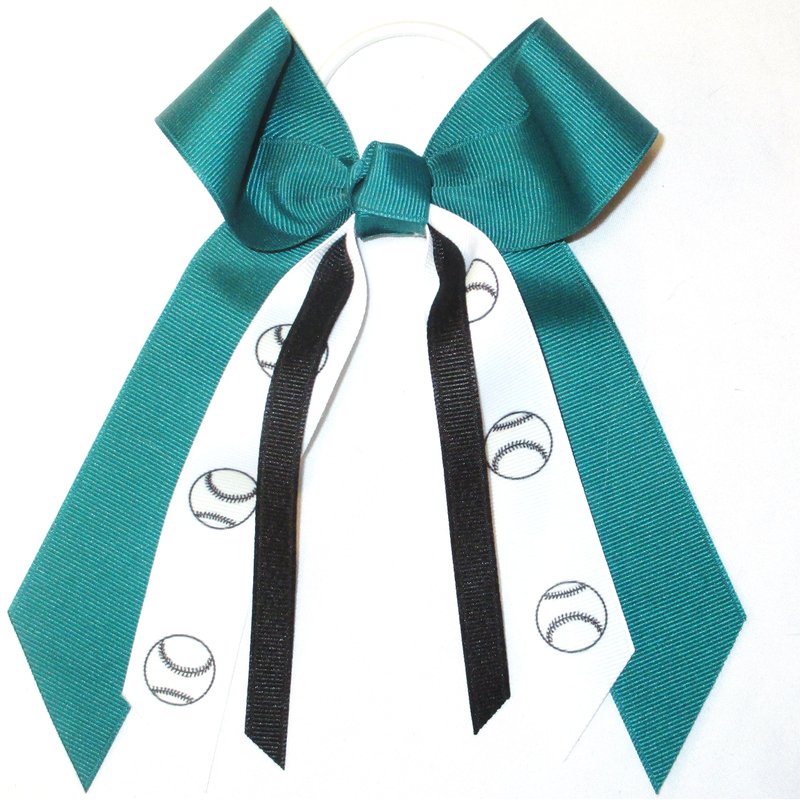 Sublimation Specialties Softball Baseball Hair Bow - Made in The USA, White Pony Band (Teal/Black)